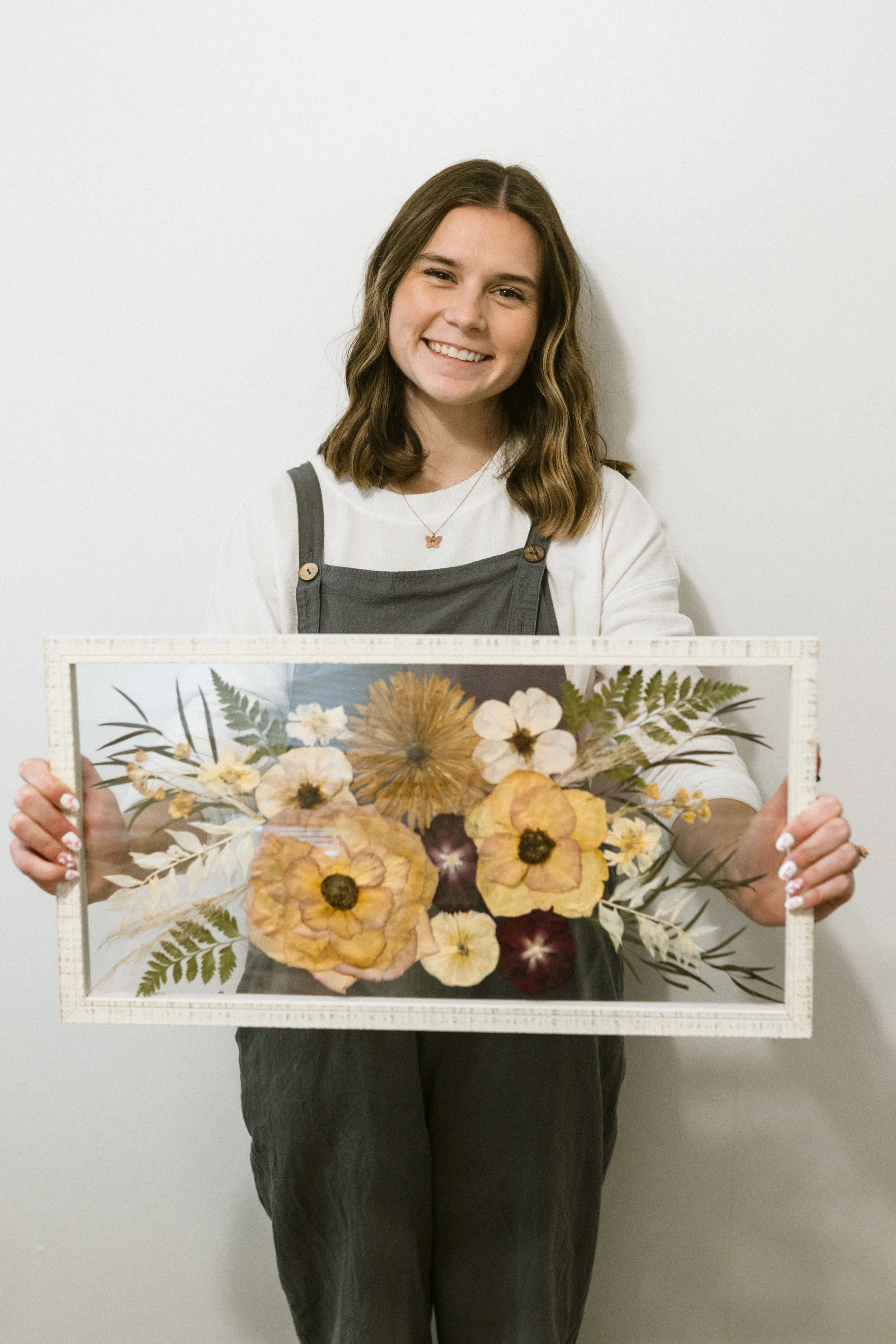 Hi! I’m Kourtney and I create art out of pressed flowers. Flowers are beautiful and are often used during very special moments in our lives, being able to save them is something I’ve become so excited about! This process is beautiful and I am excited to help you preserve your special flowers and have your own pressed flower art piece! Thanks for being here!